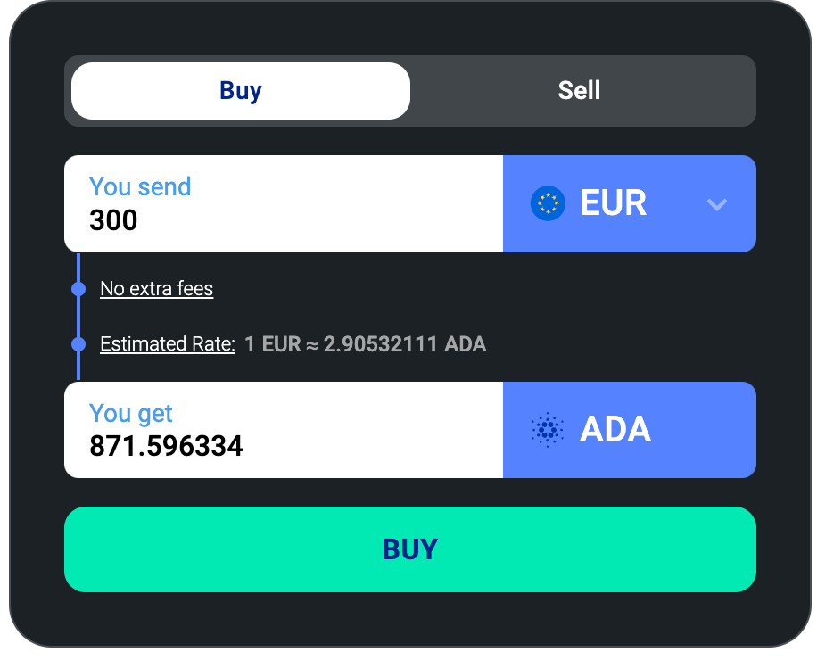 This is the easiest and most direct way of purchasing ADA with your Debit/Credit Card.